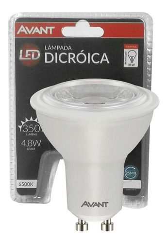 Tipo de Base: GU10 Marca: CTB Tensão de entrada: 110-220V (Bivolt) Angulo: 36o Material: Abs de alta resistência Cor da luz: Branco Frio (6000K) Dimensões: Altura: 5,5cm / Diâmetro: 5cm Peso: 35g Luminosidade: 350 lúmens Eficiência: 73 Lm/W 4.8w - Baixíssimo consumo de energia Equivale a uma lâmpada incandescente de 49w IP20: Uso interno Temperatura de operação: de -20° a 45° Acabamento: Leitoso Super econômica: 90% de percentual de economia Cabe em qualquer Spot comum para Lâmpada Dicróica Longa durabilidade superior a 25 mil horas Excelente iluminação Registro Inmetro: 004924/2019